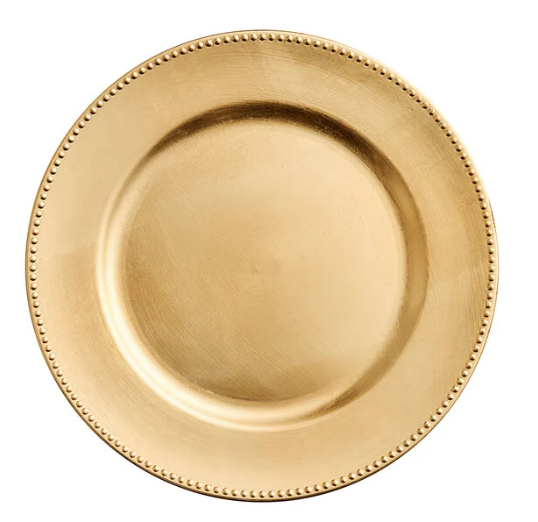 Elevate your event with our most popular stunning charge plates. We offer affordable premium elegant plates. With our plates you would be adding a luxurious touch that will impress your guest. We carry beaded, rope braid, glitter, burlap, checkers, wooden, fluted, and paint brush.